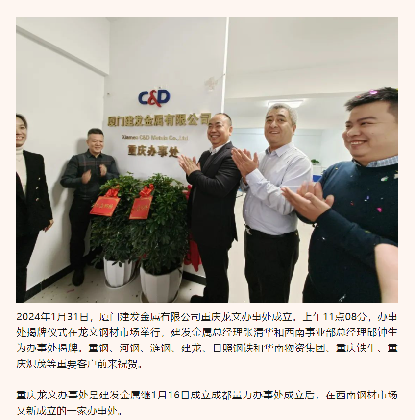 續添新力!建發(fā)金屬重慶龍文辦事處成立